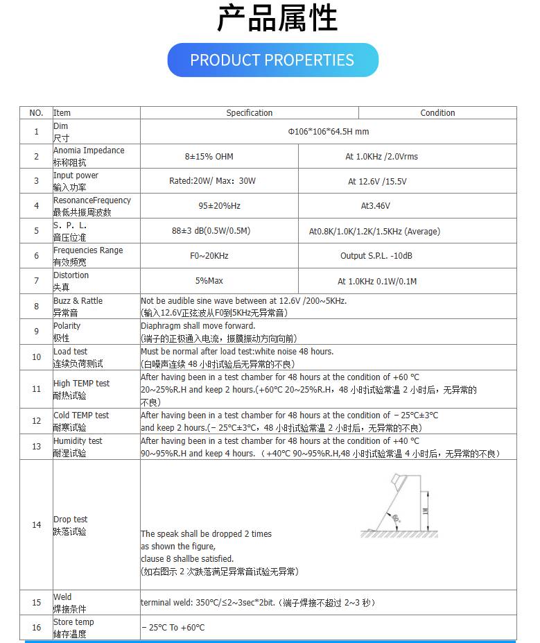 动奇喇叭20*35mm智能楼宇语音对讲机车载台进口耐高温膜片胶壳8欧2W喇叭