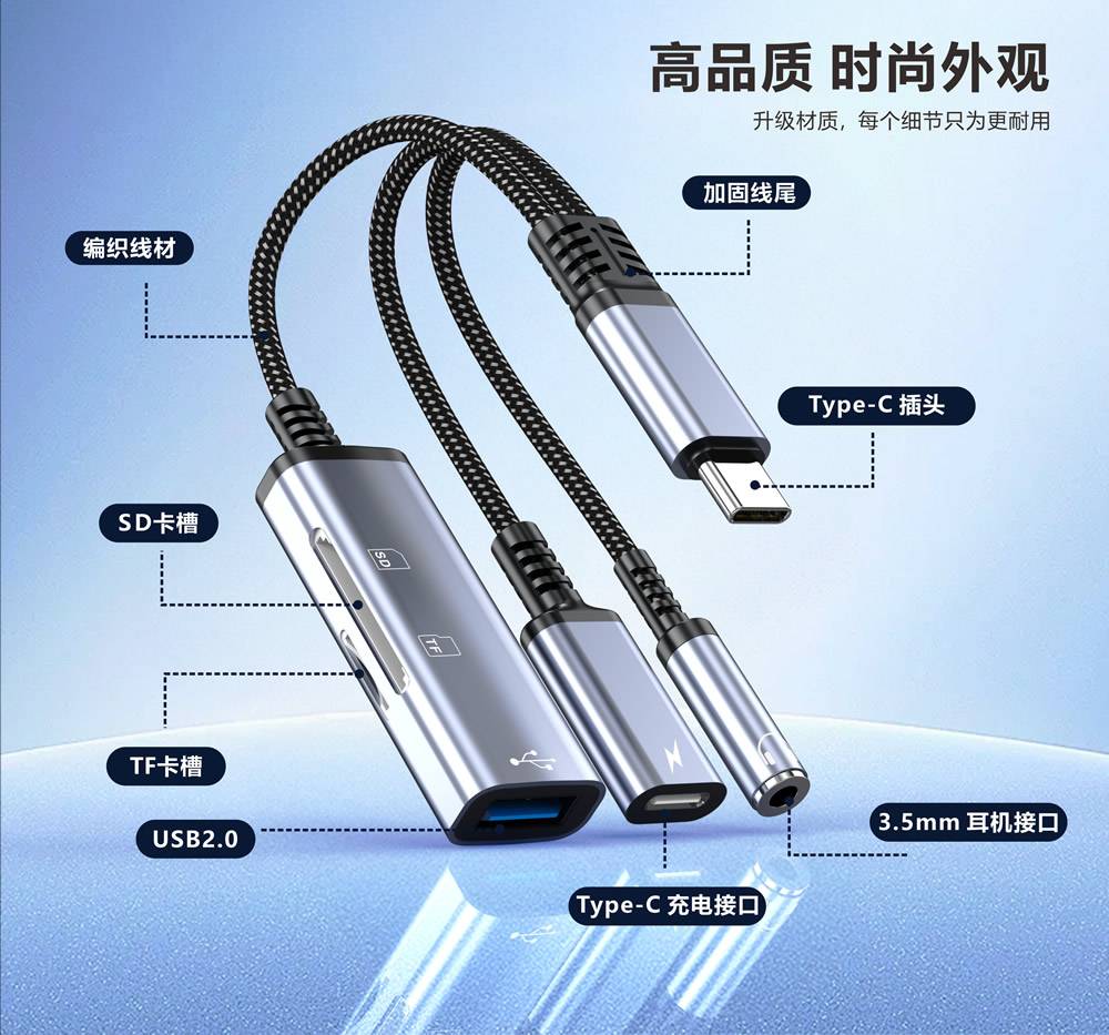 type-c手机耳机转接线音频充电二合一一拖二DAC数字解码转换器TPC