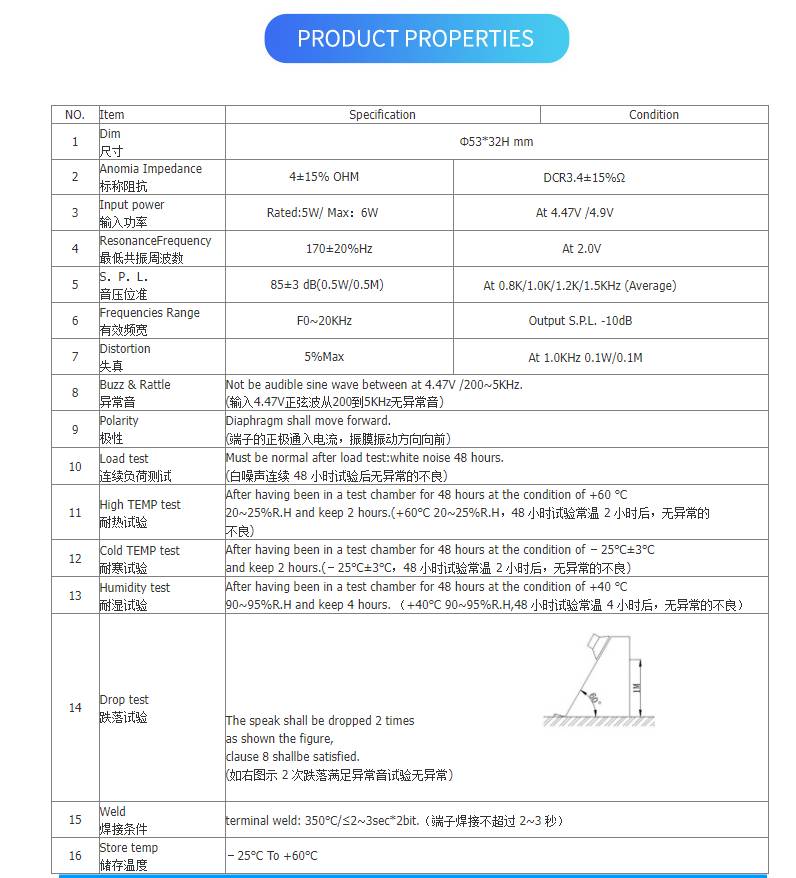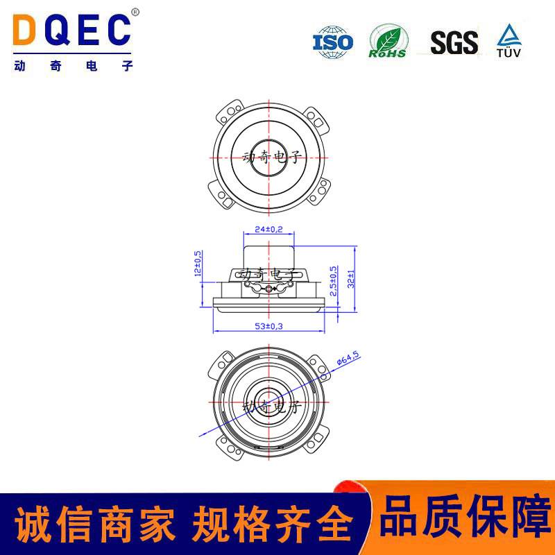 53mm内磁全频喇叭4欧5W机器人蓝牙音响ai音响机器人智能家居喇叭