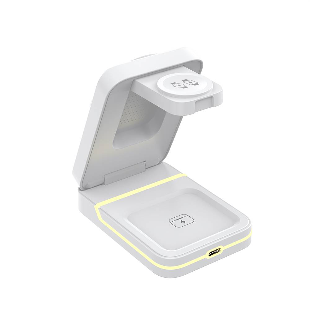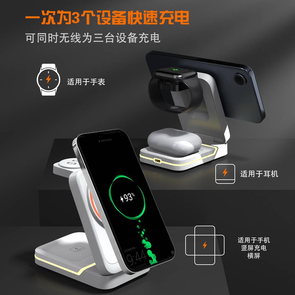 三合一折叠无线充,带小夜灯。可充手表、手机、耳机