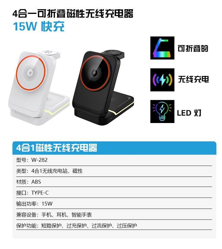 1芯3充15W磁吸无线充电器