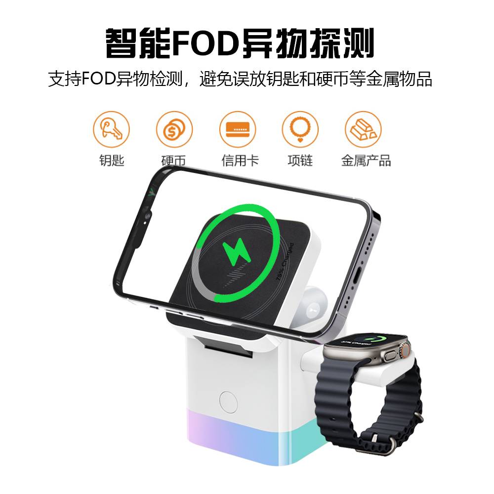 15W磁吸三合一无线充