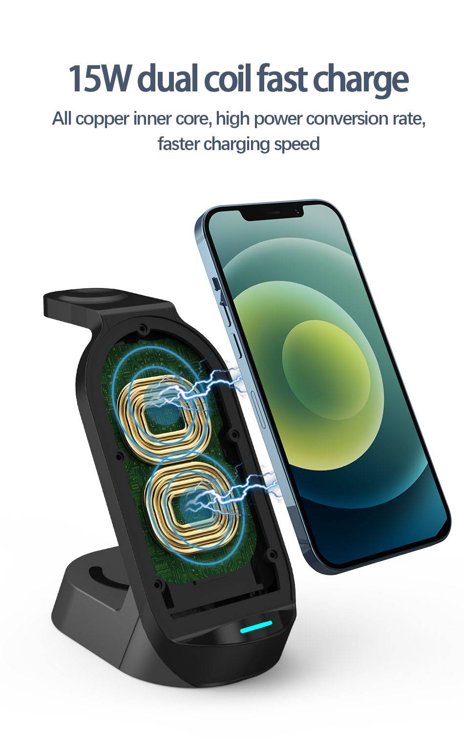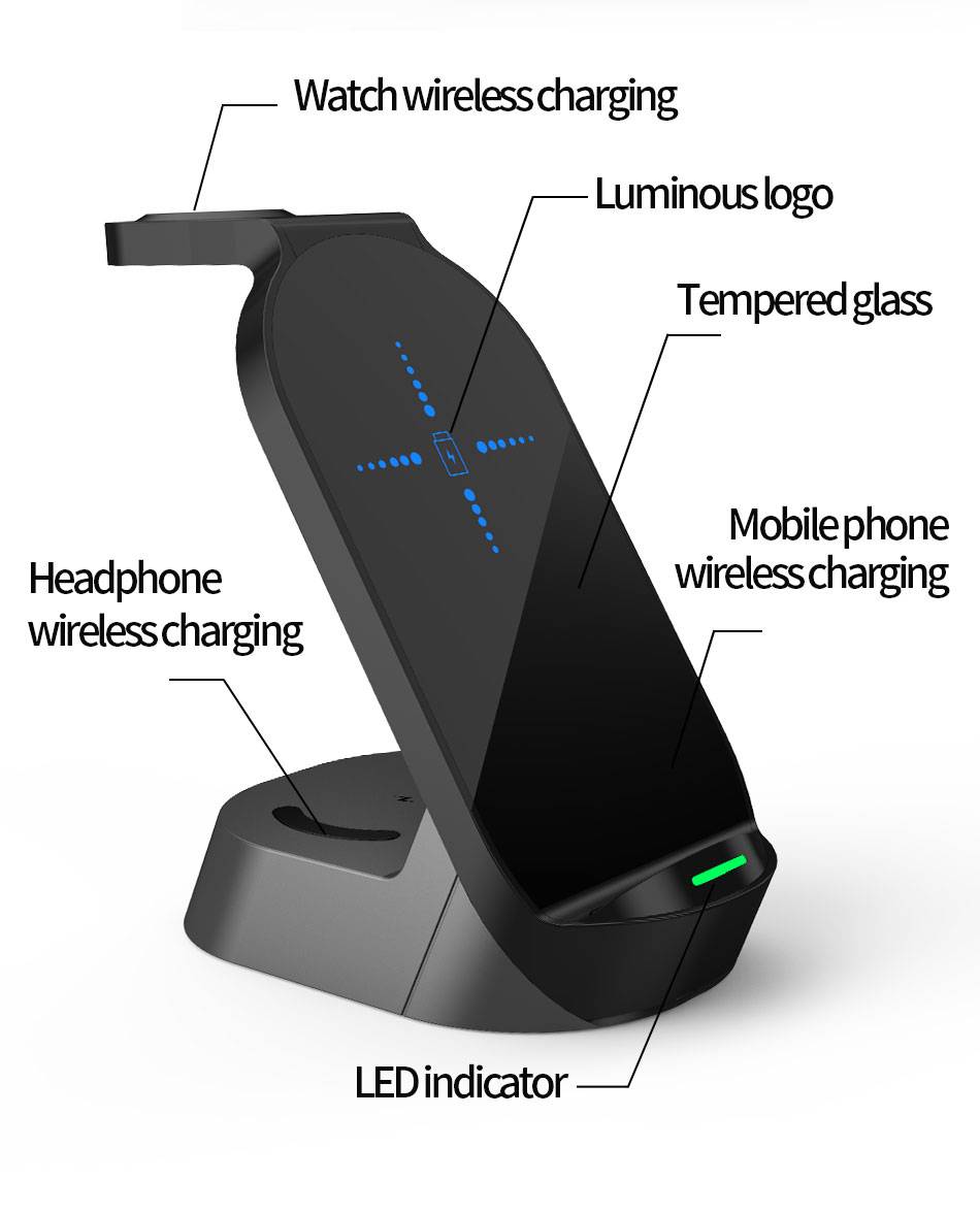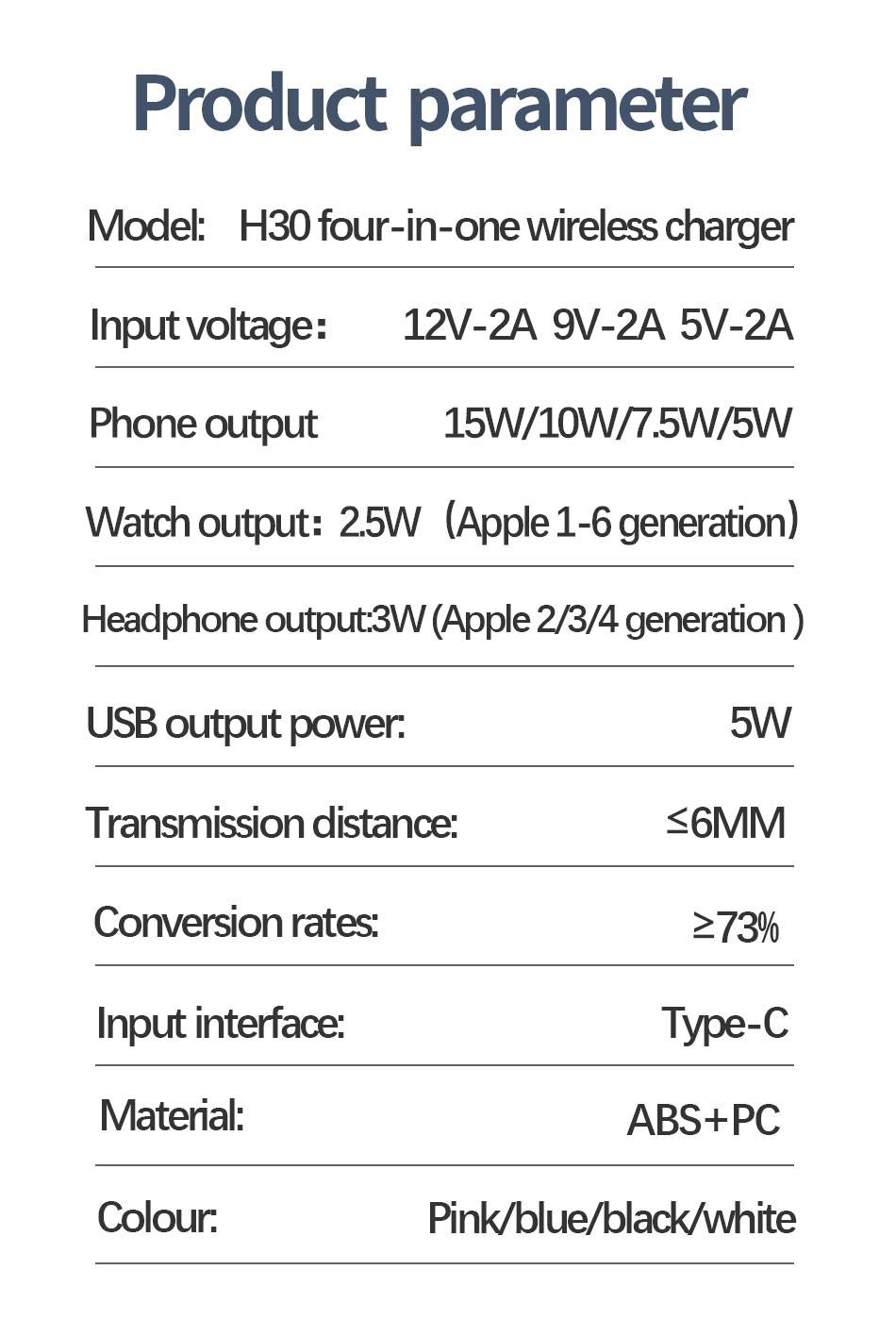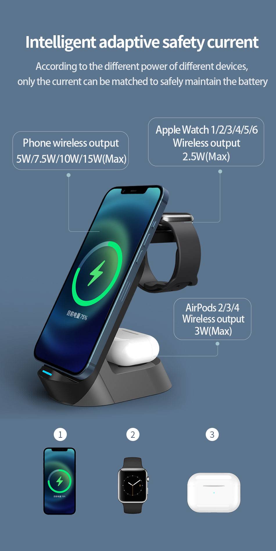 Three-in-One Wireless Charger with Built-in Extendable Cable H32Pro