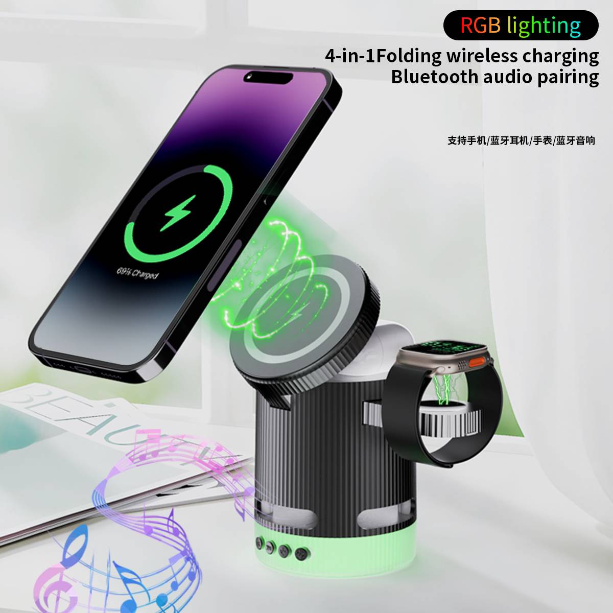 H61 four in one Foldable Wireless Charging Bluetooth Speaker Matching