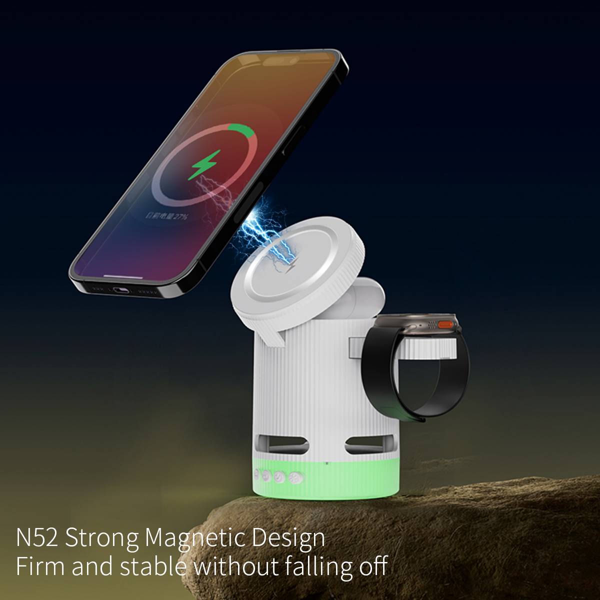 H32 magnetic three in one wireless charging white