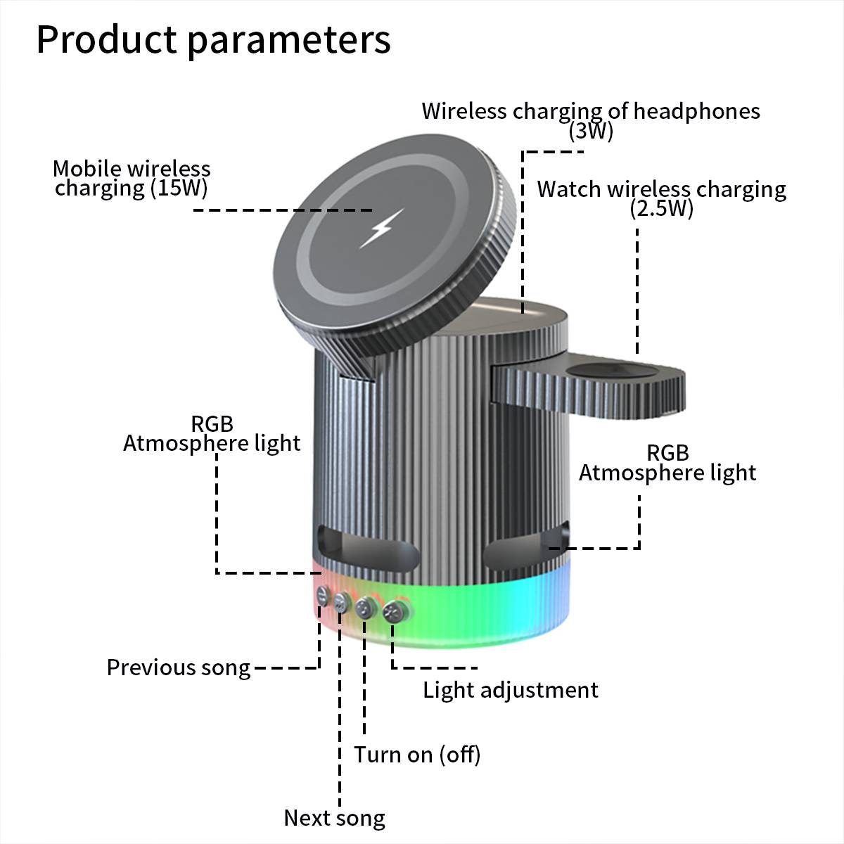 H64 RGB magnetic three in one wireless charging bracket