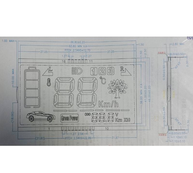 LCD Display Model 19321 Suitable for head-up displays (HUDs) in-vehicle smart meters instruments and meters etc