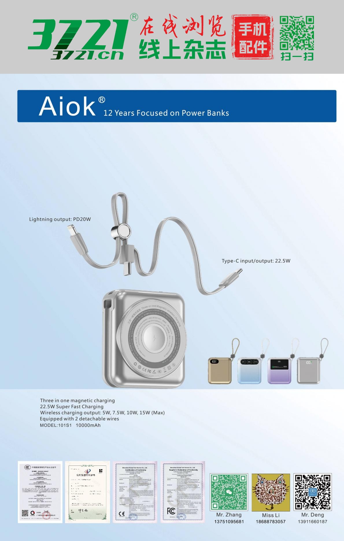 主营:充电宝无线充,