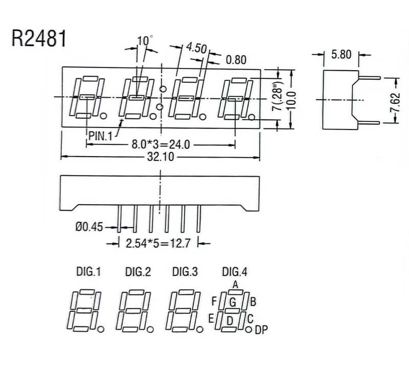 LED digital tube DL2481Suitable for various household appliances such as electronic timers digital multimeters.