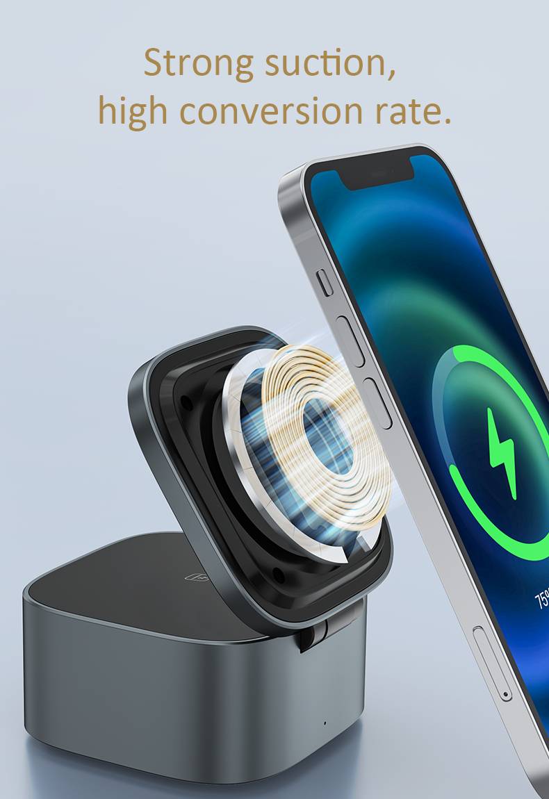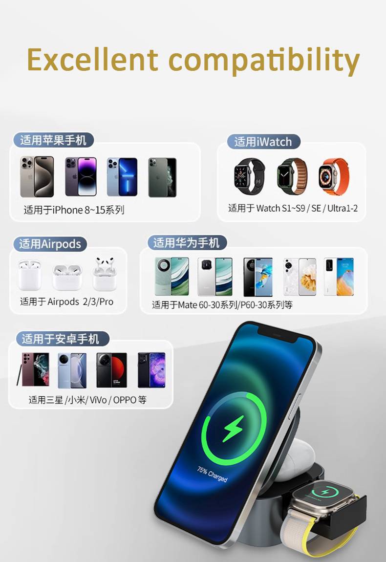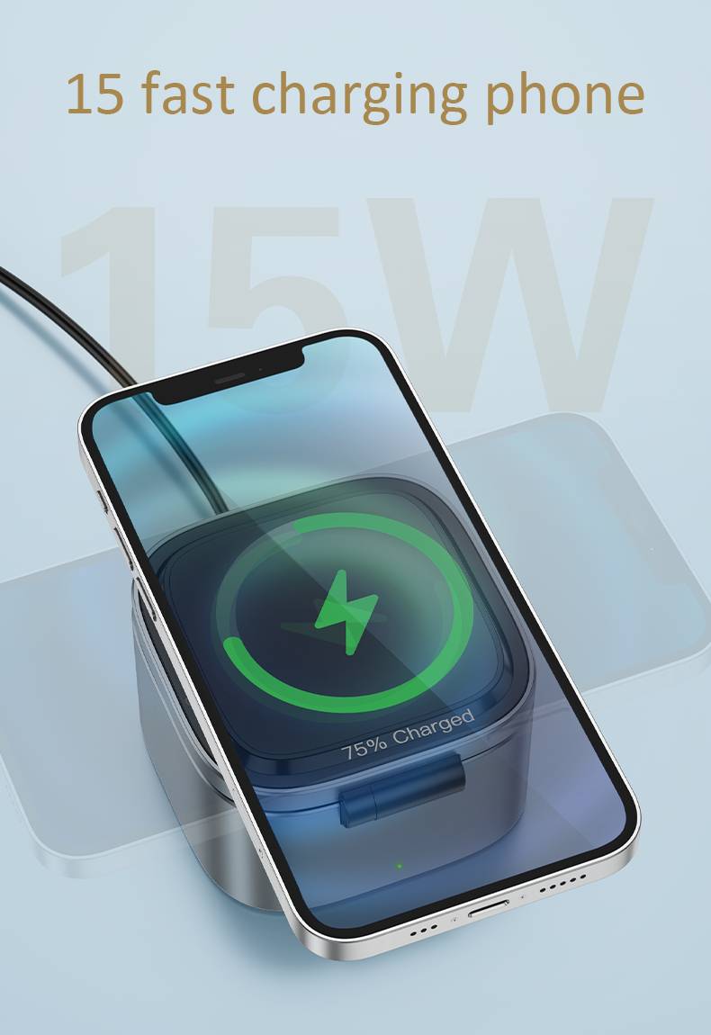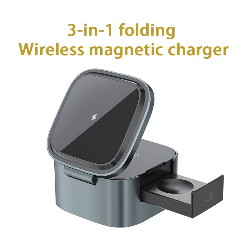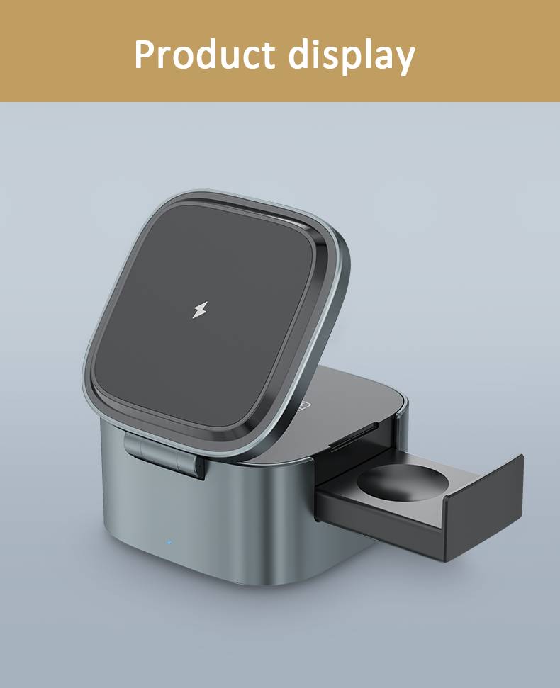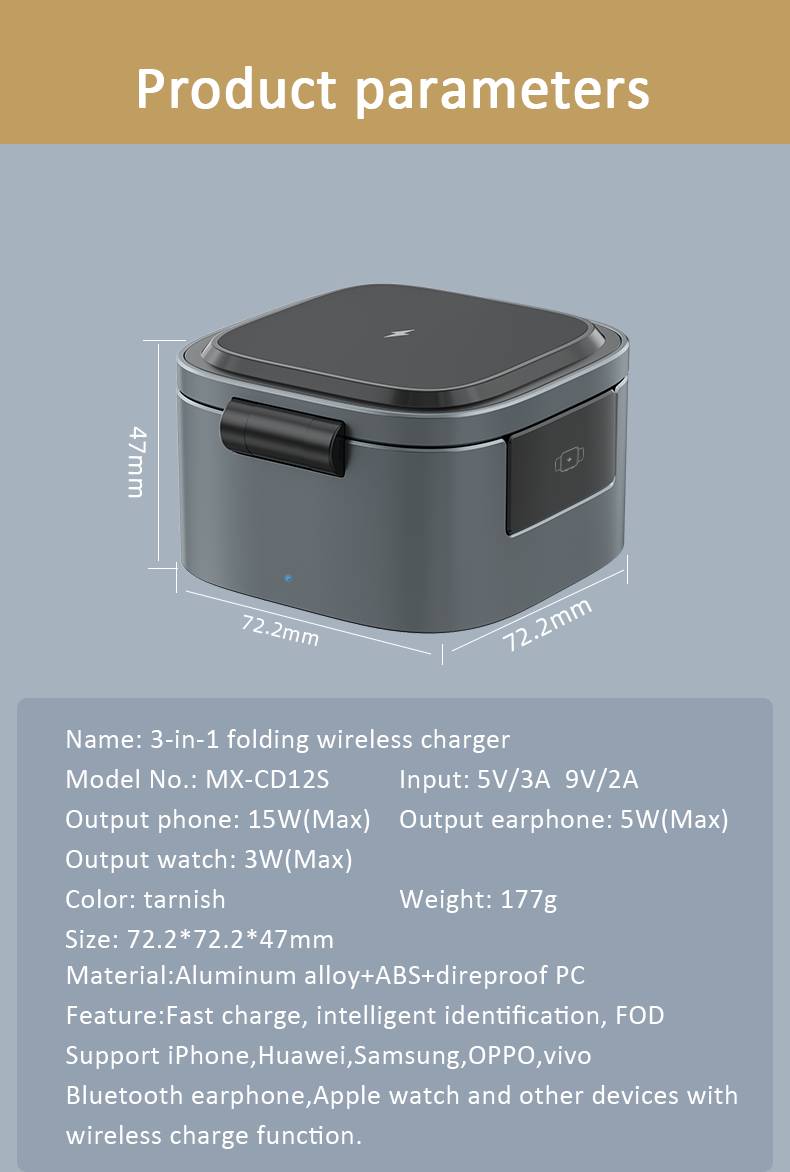 Three in one metal wireless charging base rotating 15W magnetic wireless charger bracket fast charging MX-CD12S