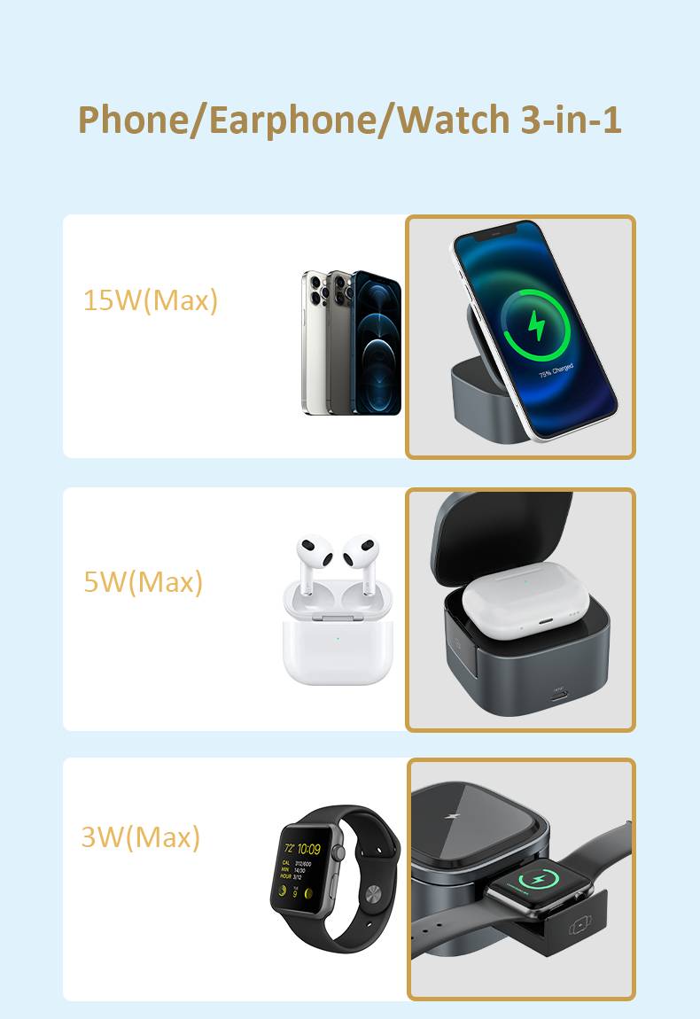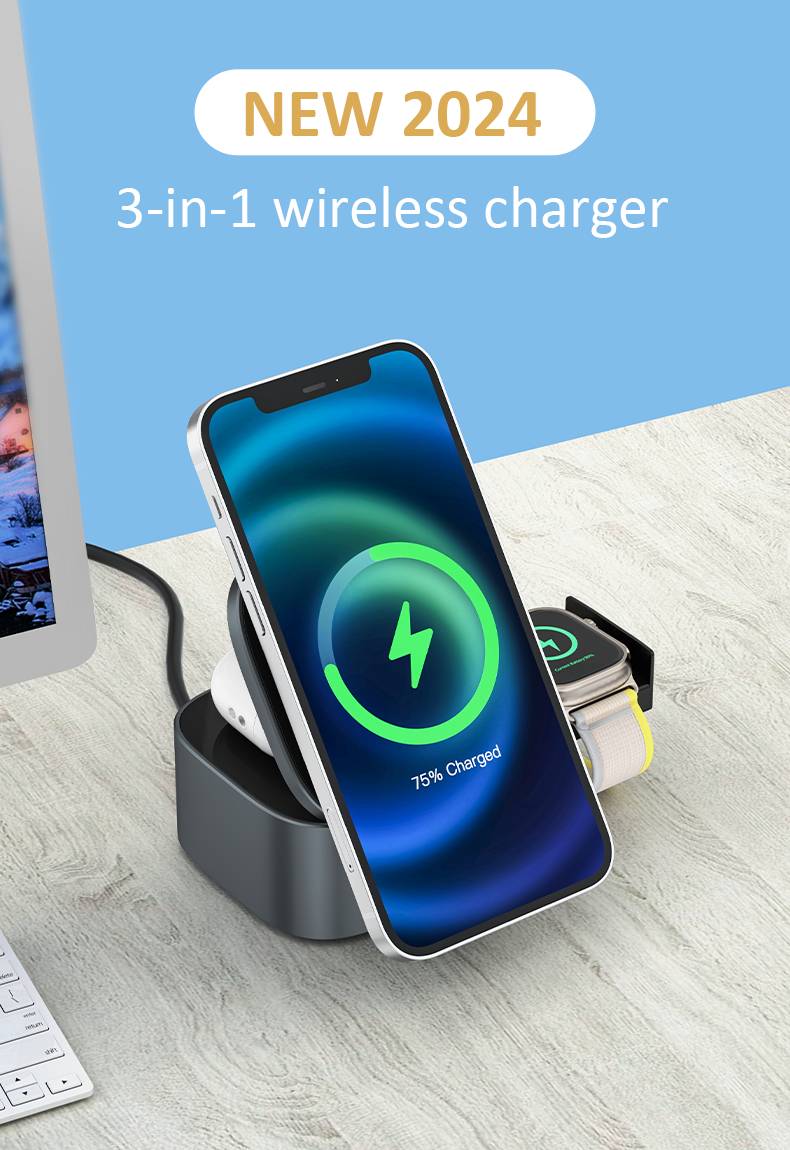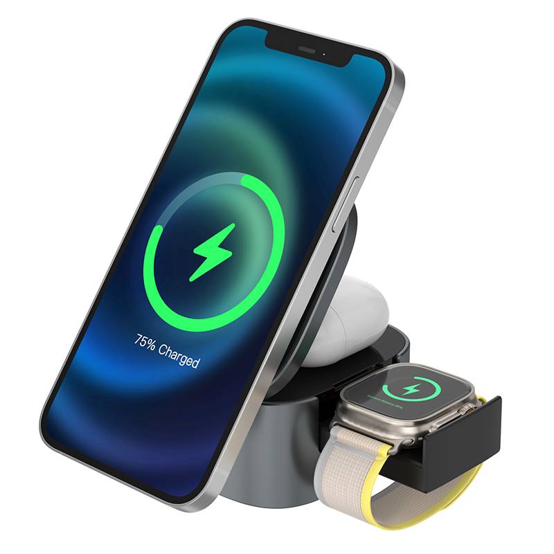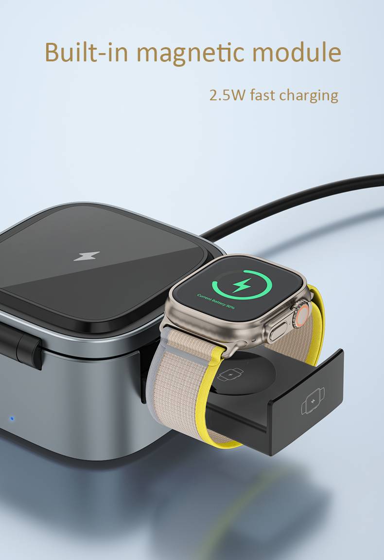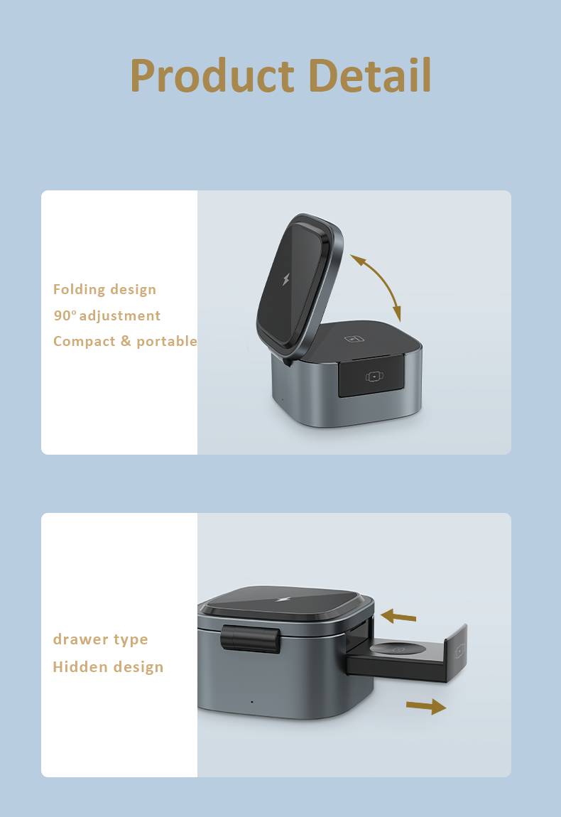 Three in one metal wireless charging base rotating 15W magnetic wireless charger bracket fast charging MX-CD12S