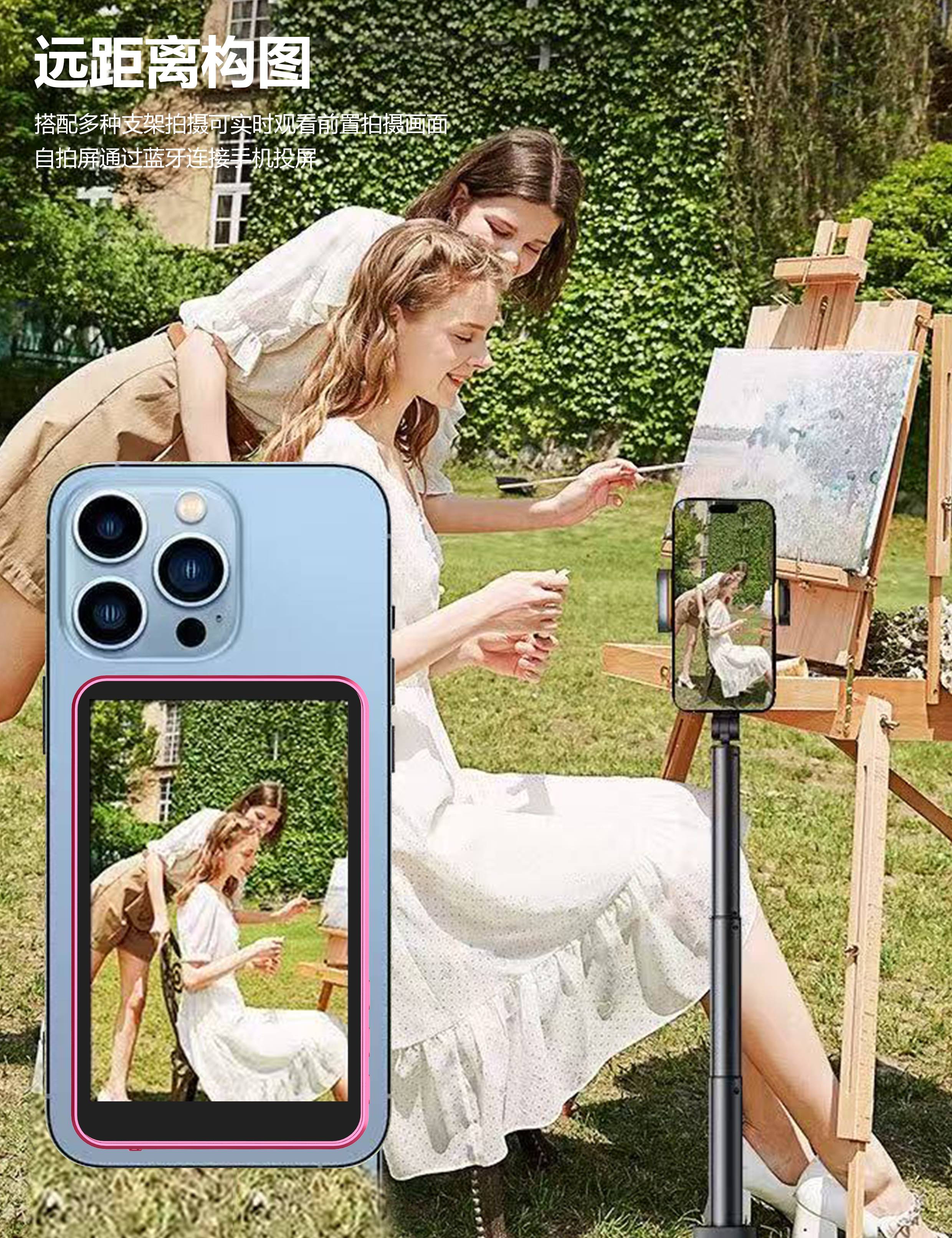 Mobile phone screen sharing device, rear selfie wireless display monitor, internet celebrity specific magnetic selfie sc