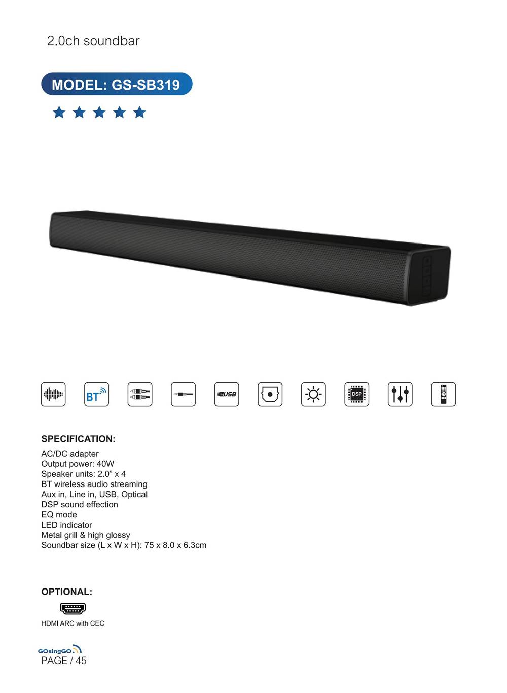 2.0 Bar Speaker GS-SB319