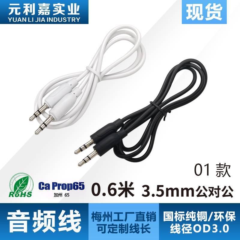 3.5mm audio cable dual sound 0.8m audio connection cable PVC nickel plated AUX mobile phone connection male to male audi