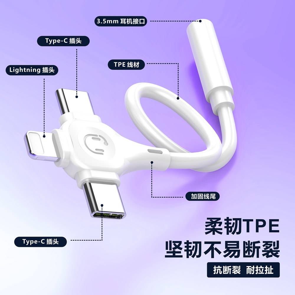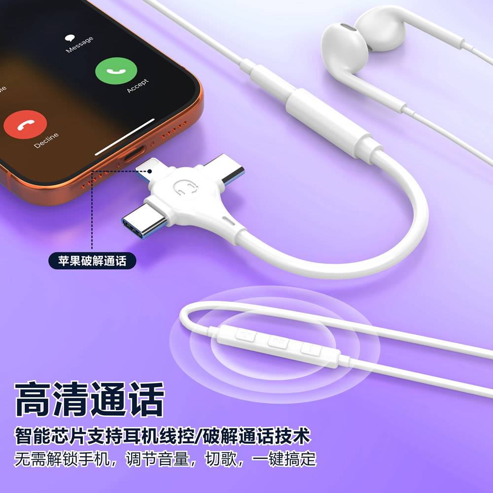 Suitable for Apple Earphone Converter Type-C to 3.5mm Live Call Audio Converter Cable 3-in-1 External Connection