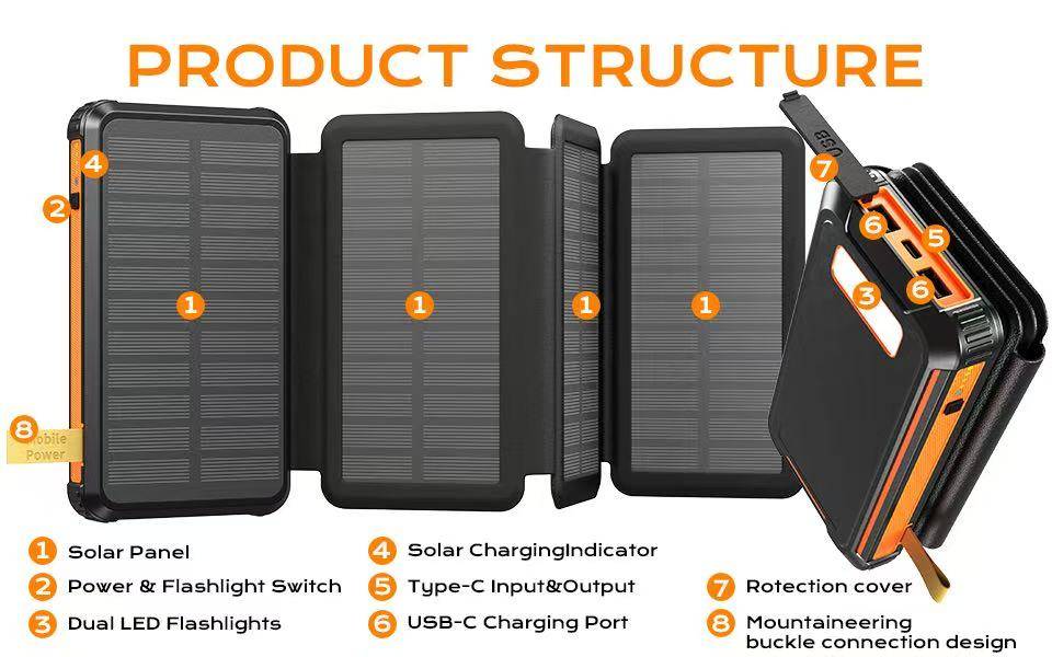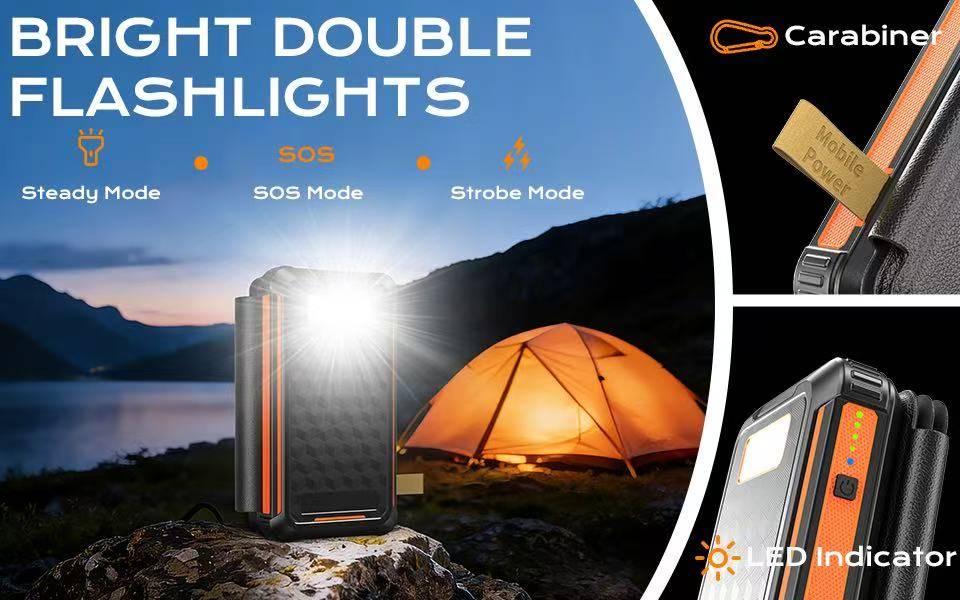 Equipped with fast charging cable, solar power bank, wireless charging, mobile power bank