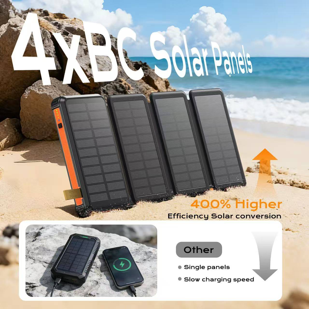Outdoor waterproof solar power bank, large capacity compass, portable power bank