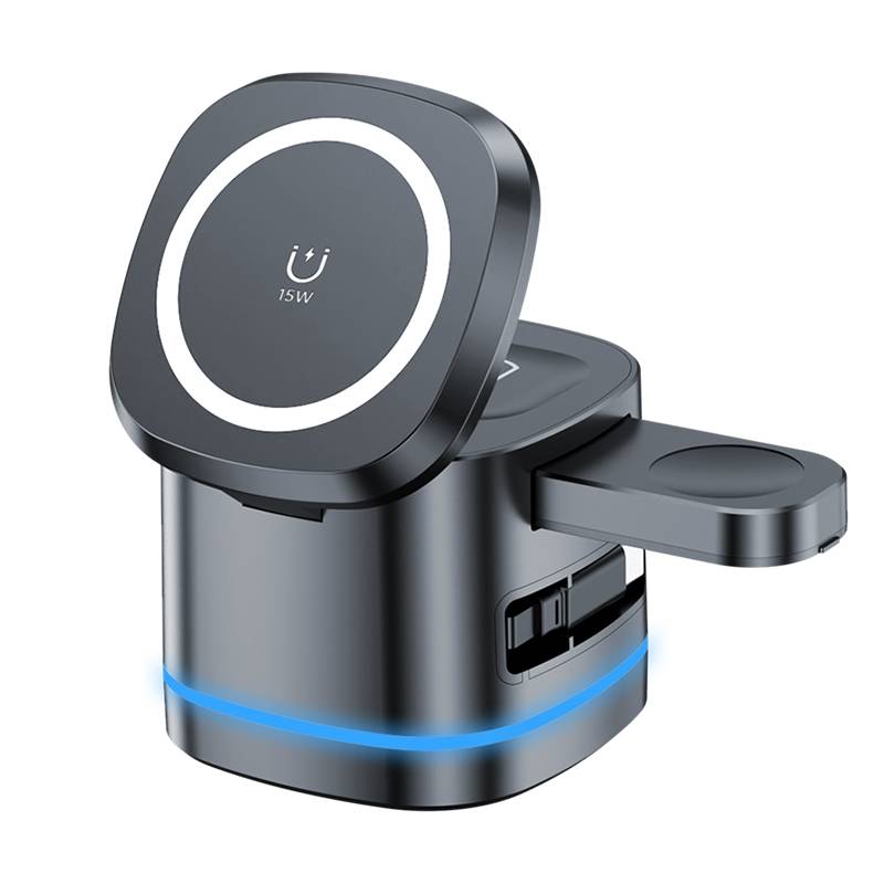H32 magnetic three in one wireless charging iron gray