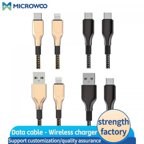 Mfi certification lighting to aux data cable nylon weaving+metal