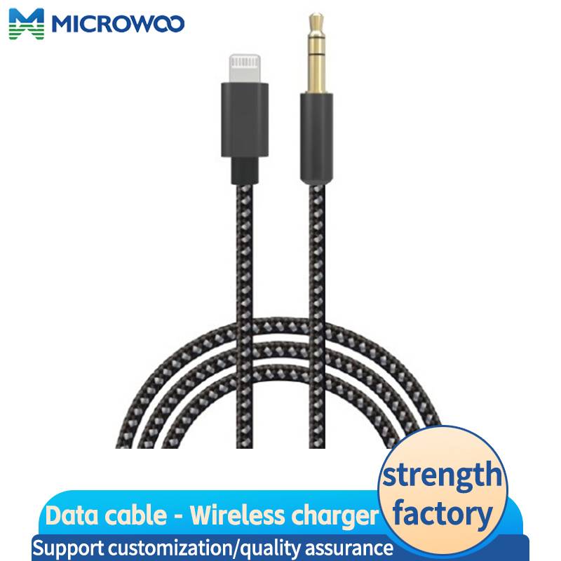 Mfi certification lighting to aux data cable nylon weaving+metal