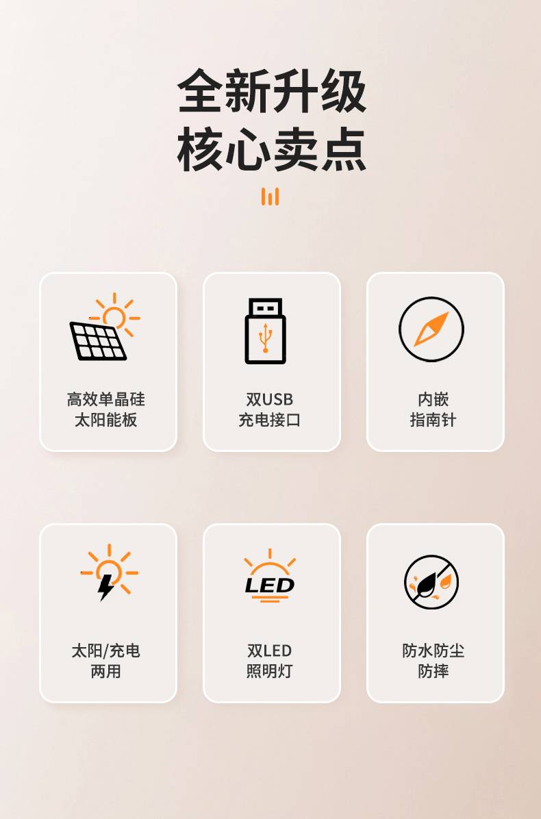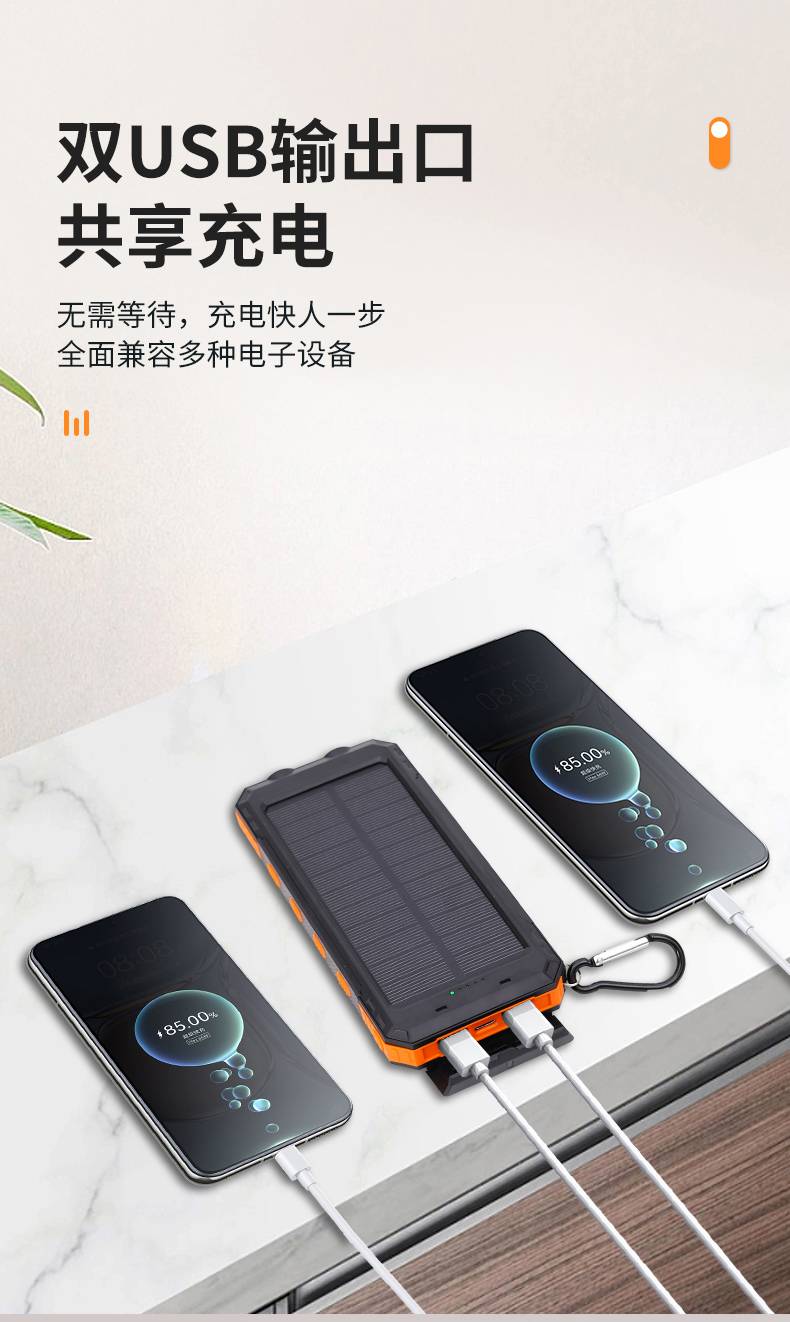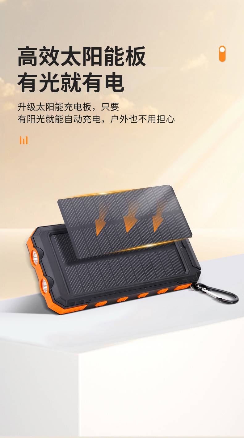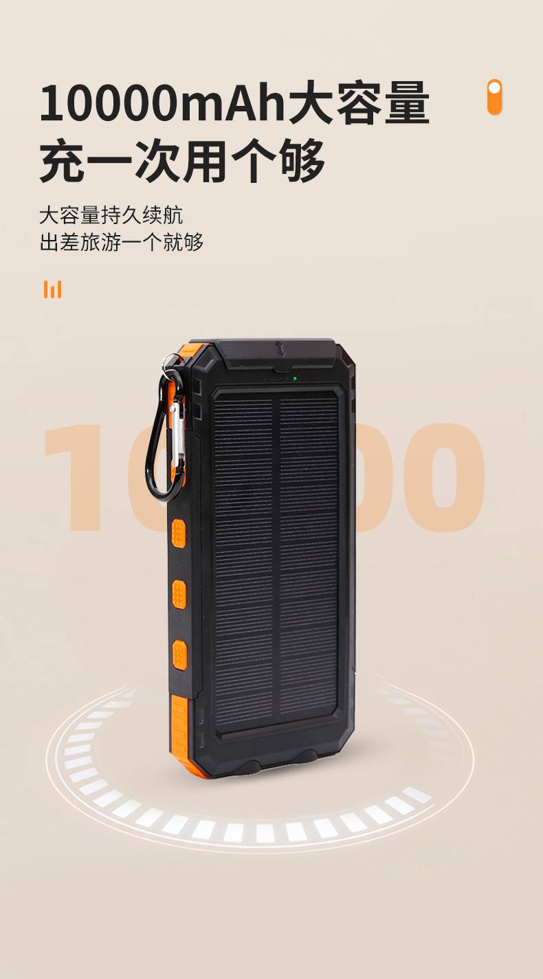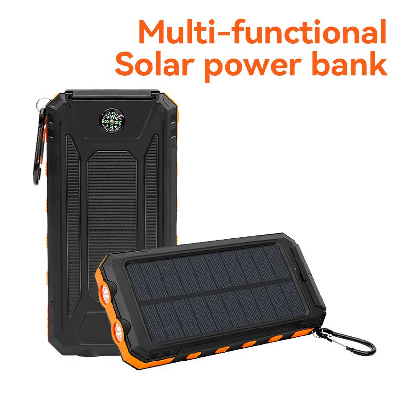 Outdoor waterproof solar power bank, large capacity cross-border compass mobile power bank