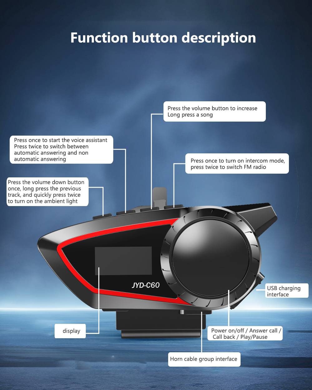 JYD-C60 Motorcycle helmet Bluetooth headset dual intercom Bluetooth 5.4 solution