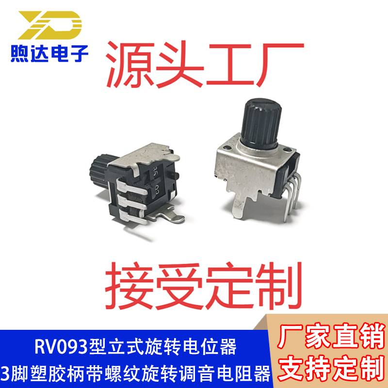 RV093 horizontal rotary potentiometer with 3-pin plastic handle and threaded rotary tuning resistor