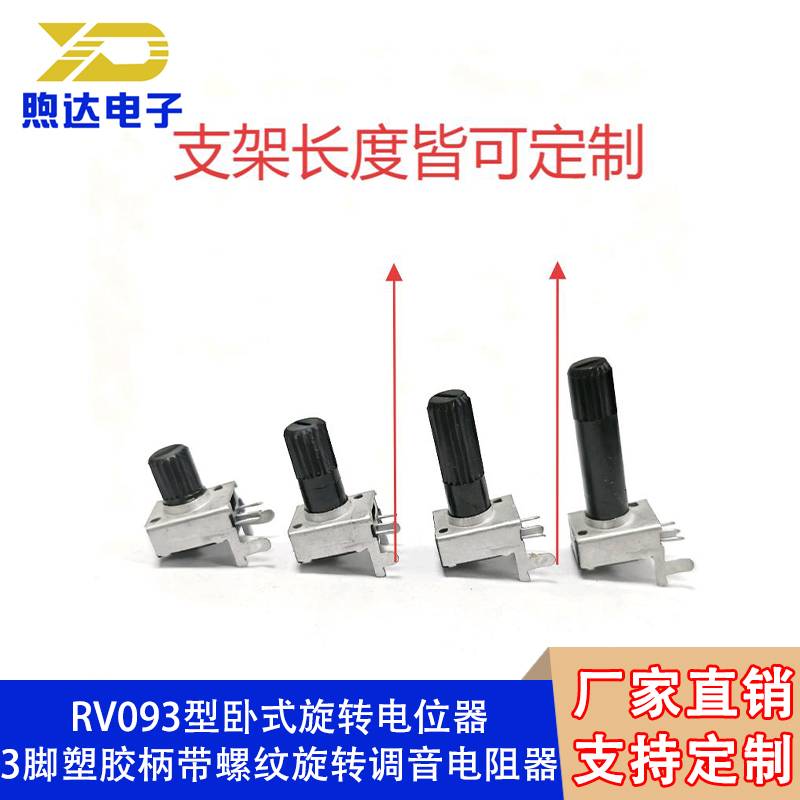 RV093 horizontal rotary potentiometer with 3-pin plastic handle and threaded rotary tuning resistor
