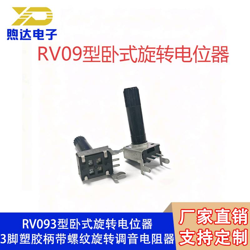 RV093 horizontal rotary potentiometer with 3-pin plastic handle and threaded rotary tuning resistor