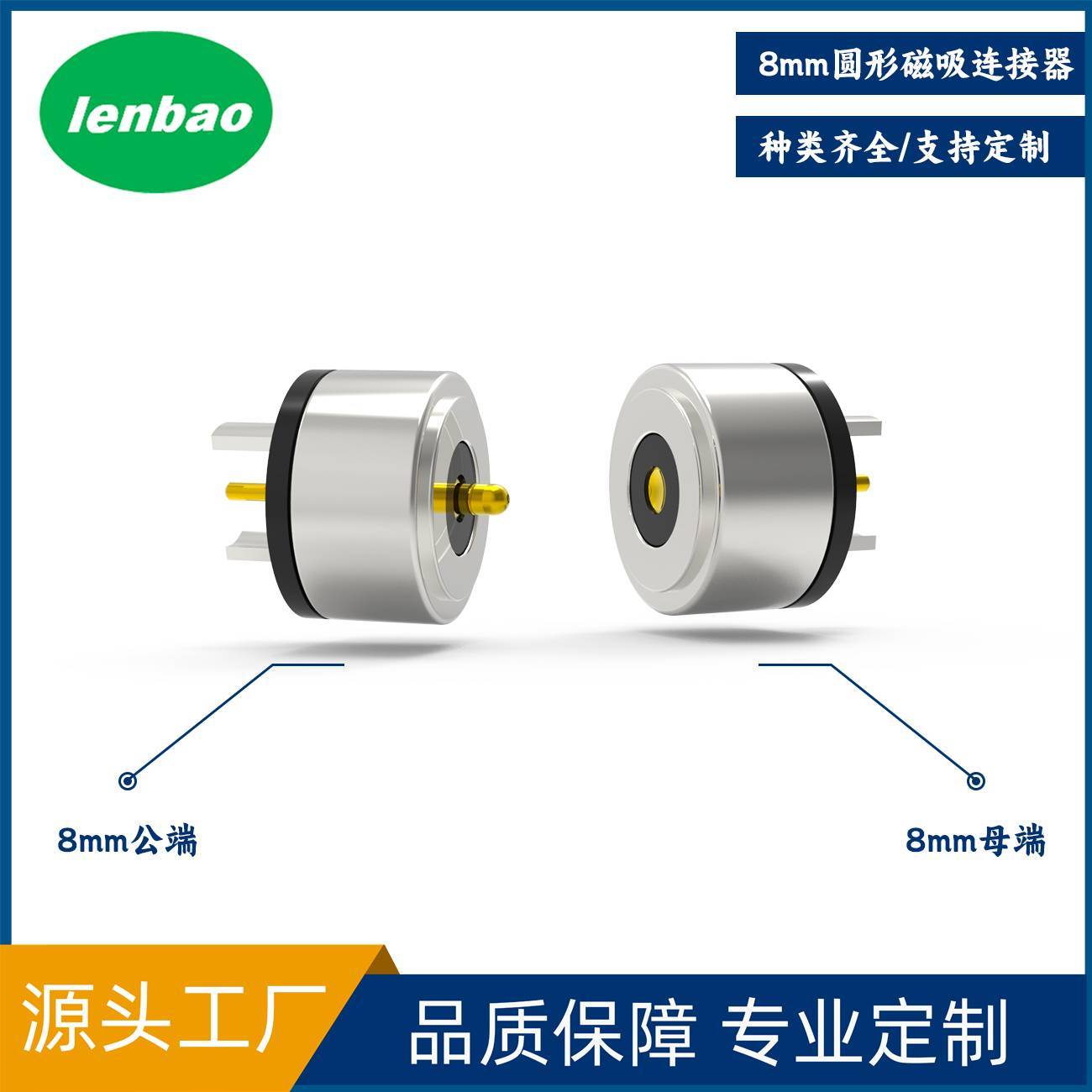 8mm circular magnetic connector with magnetic suction for high current, waterproof, gold-plated, stretchable standard pr