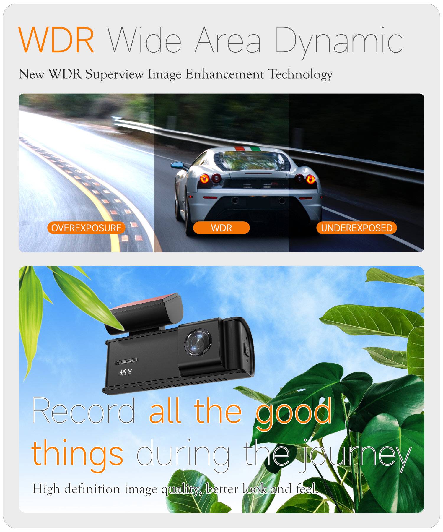 A226E Cross-border 4K Dash Cam with WiFi and Ultra-HD Dual Front & Rear Cameras