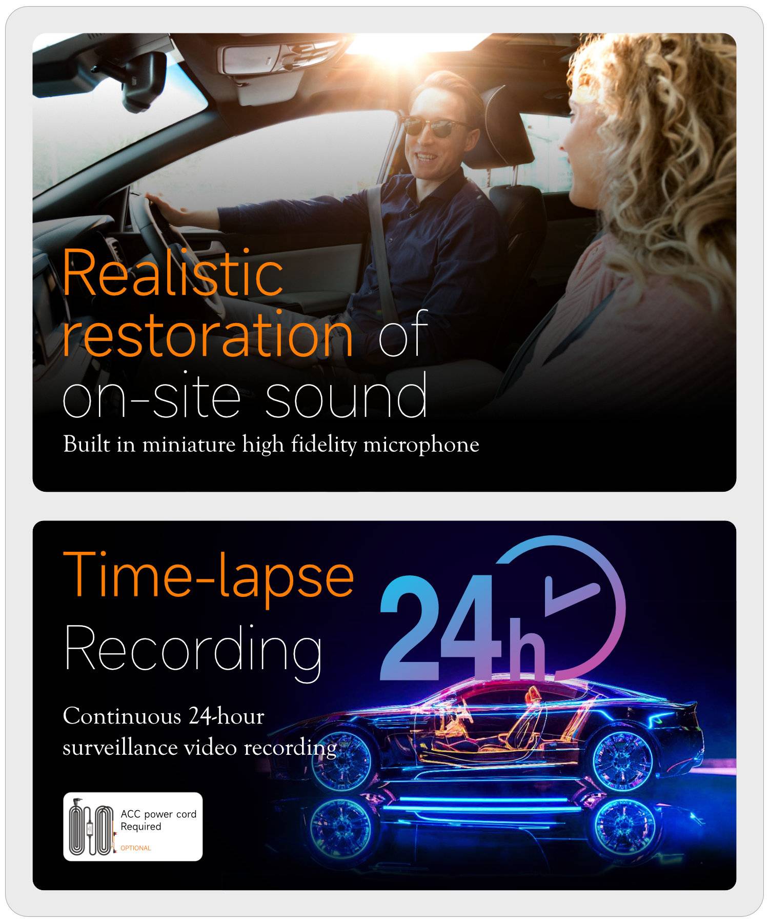 A313 Parking Surveillance Dash Cam with HD Night Vision, Wireless WiFi, and Dual Front/Front Cameras