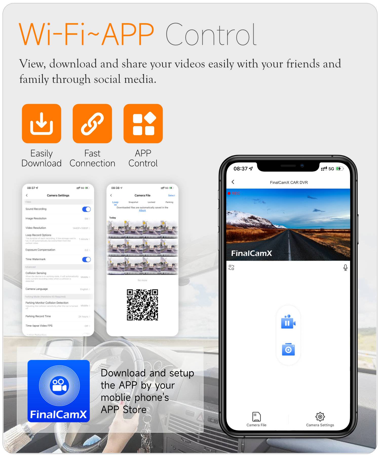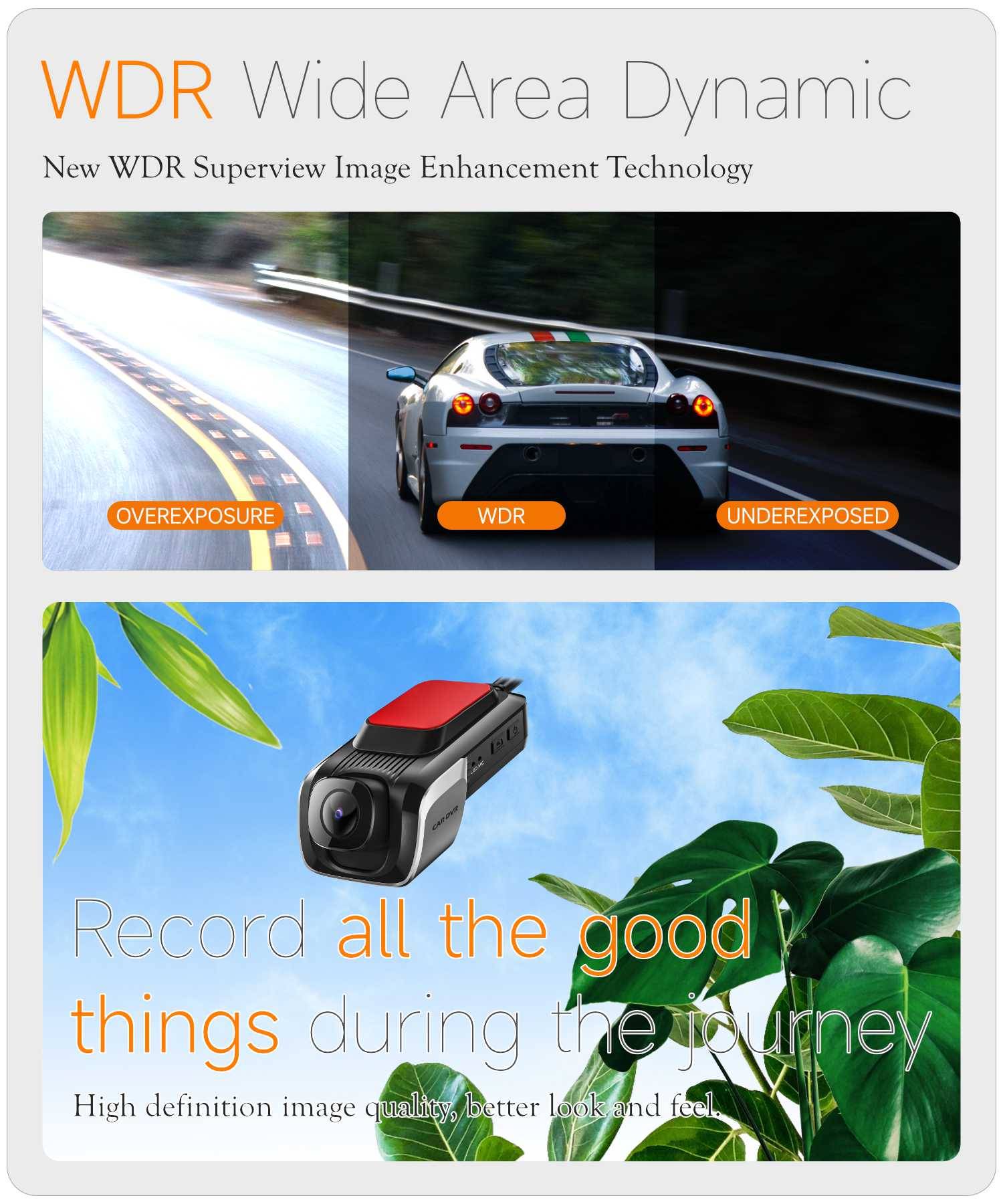 A313 Parking Surveillance Dash Cam with HD Night Vision, Wireless WiFi, and Dual Front/Front Cameras