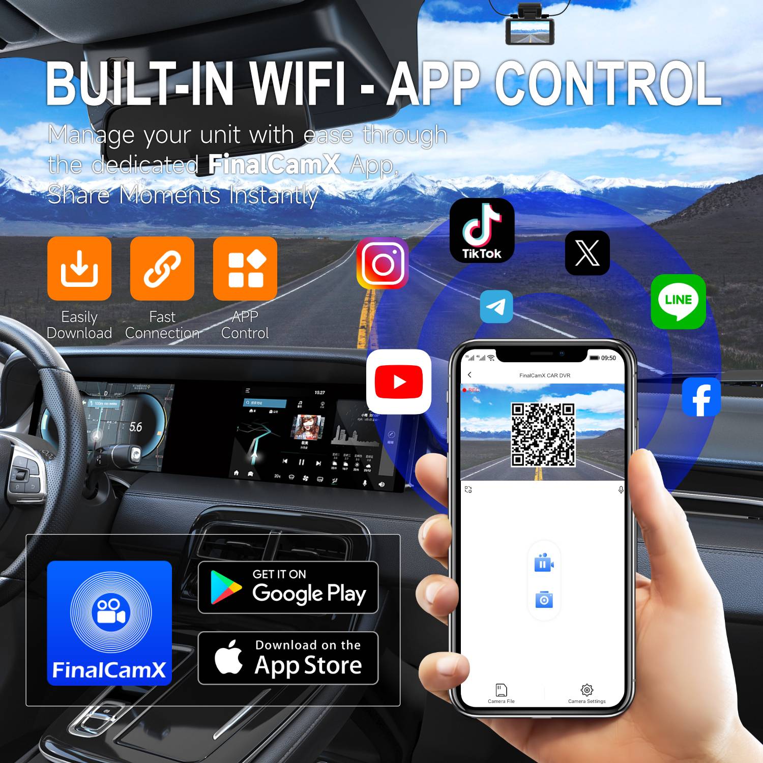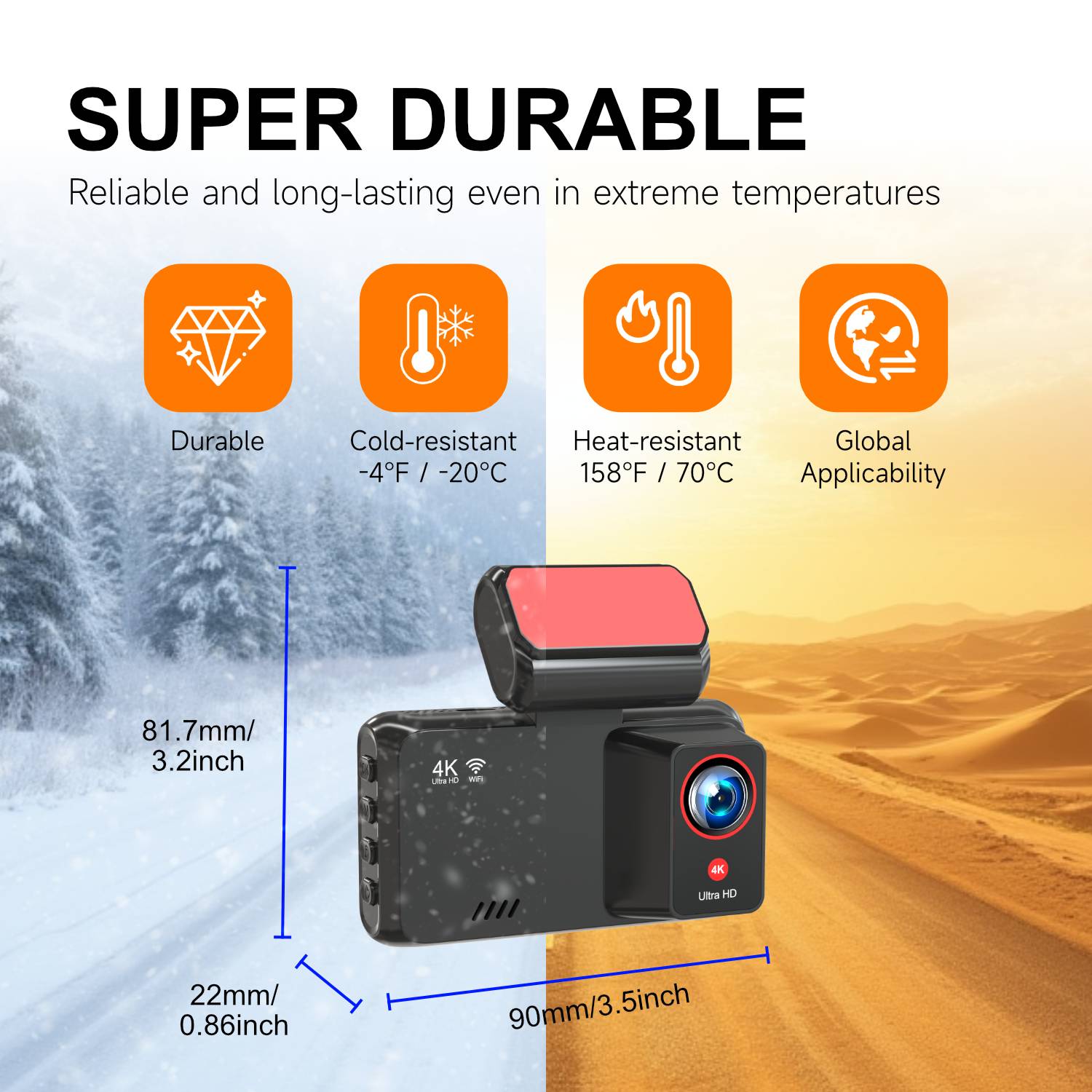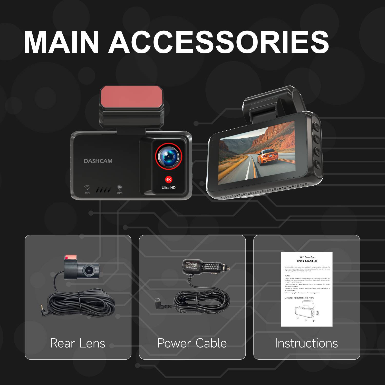 A226E Cross-border 4K Dash Cam with WiFi and Ultra-HD Dual Front & Rear Cameras