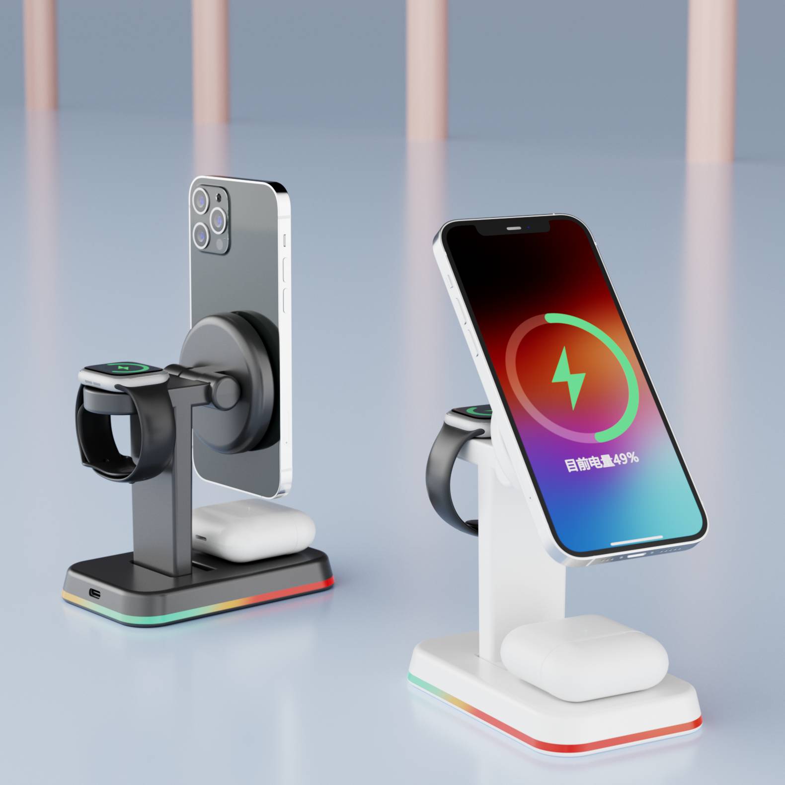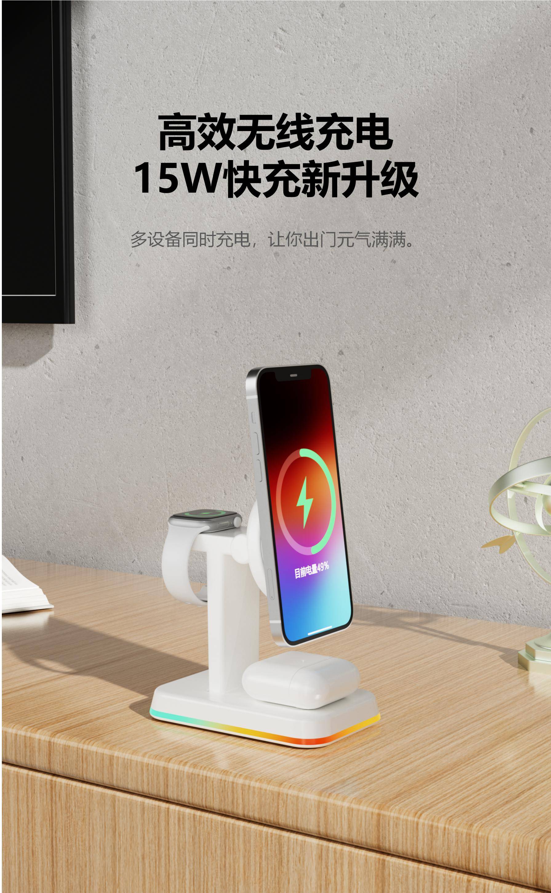 H49磁吸三合一无线充电器