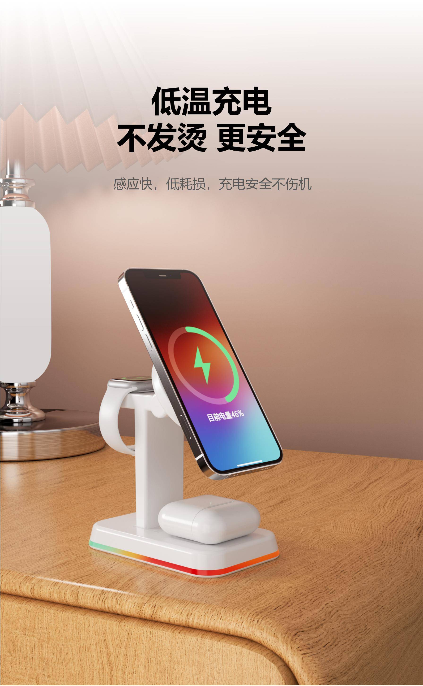 H48磁吸三合一无线充电器