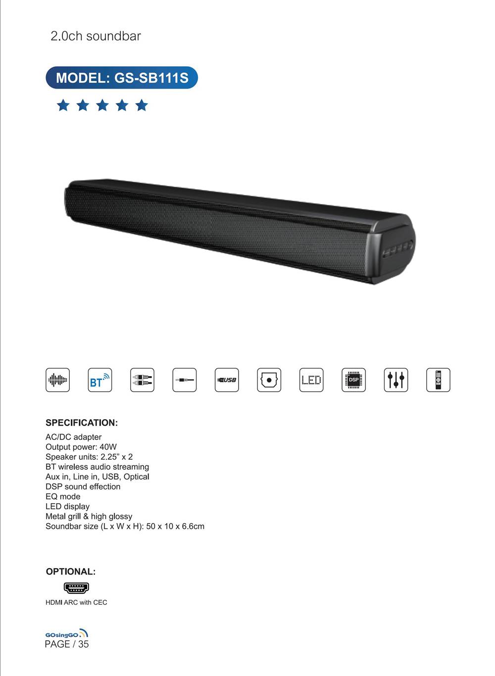 2.0条形音箱 GS-SB111S