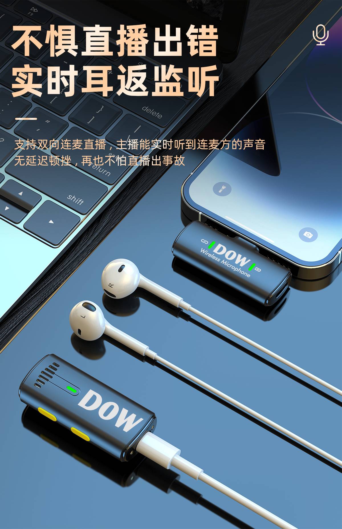 多维领夹麦W21一拖二直播拍视频支持手机收音录音2.4G无线混响连麦双向音频