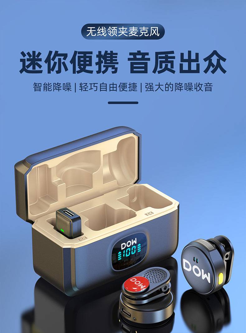 多维领夹麦W37一拖二带充电仓直播拍视频支持手机收音录音2.4G无线混响单向音频免插拔