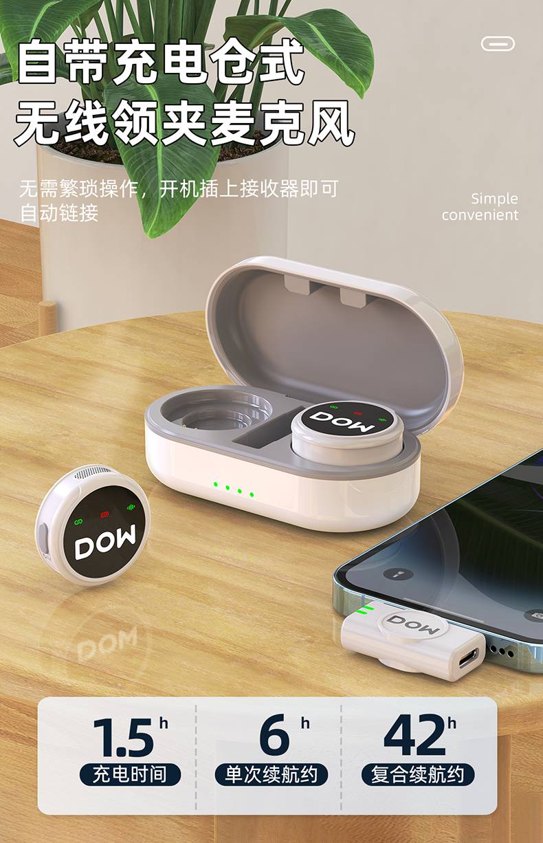 多维领夹麦W37一拖二带充电仓直播拍视频支持手机收音录音2.4G无线混响单向音频免插拔