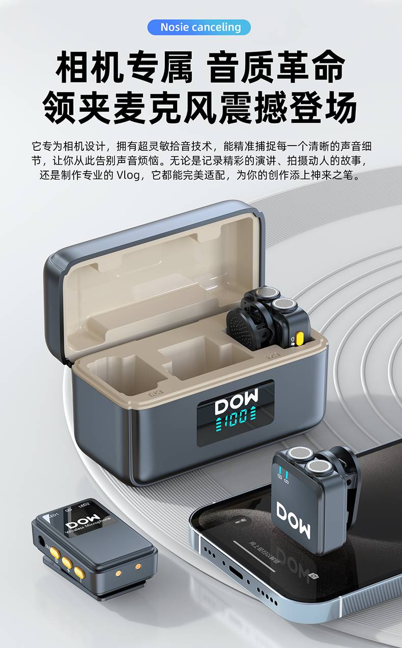 多维领夹麦W39一拖二带充电仓直播拍视频支持单反相机手机电脑收音录音2.4G无线混响单向音频免插拔