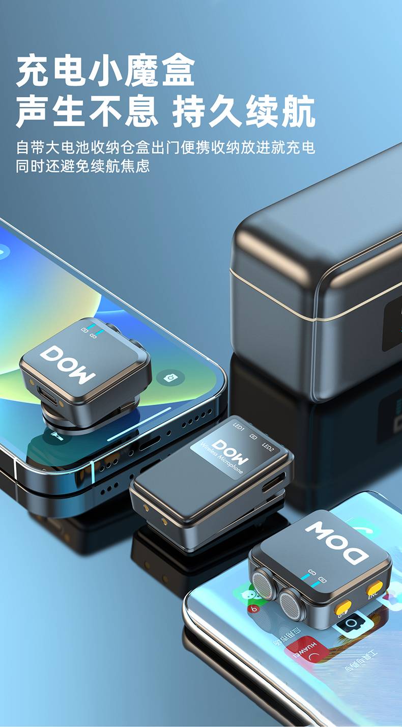 多维领夹麦W21一拖二带充电仓直播拍视频支持手机收音录音2.4G无线混响连麦双向音频