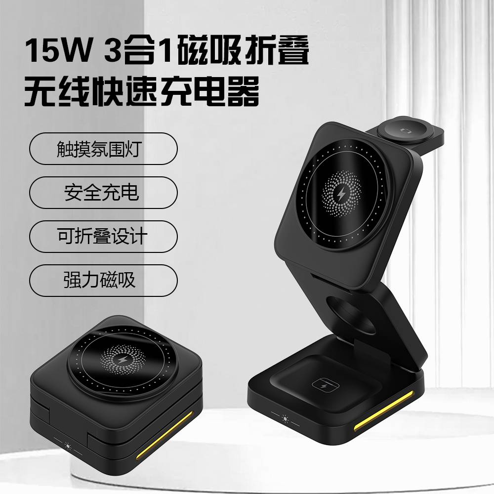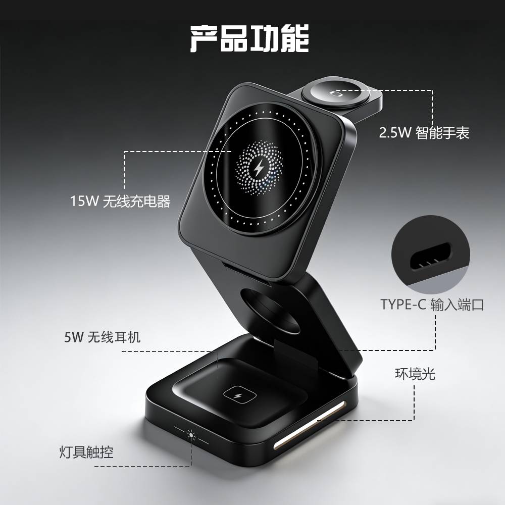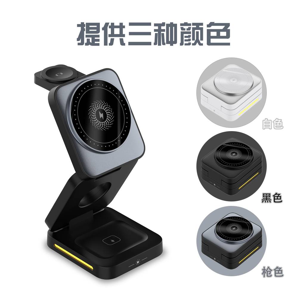 三合一折叠磁吸无线充,可充手机、耳机、手表