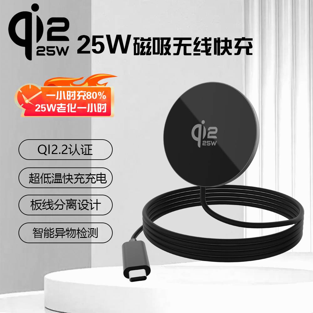 新品QI2.2 25W 无线充 磁吸带线25W快充