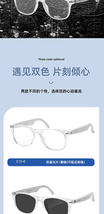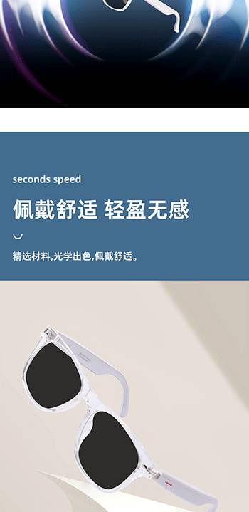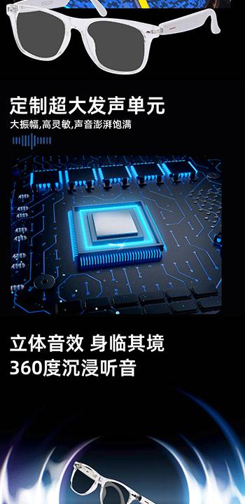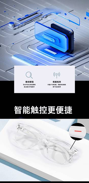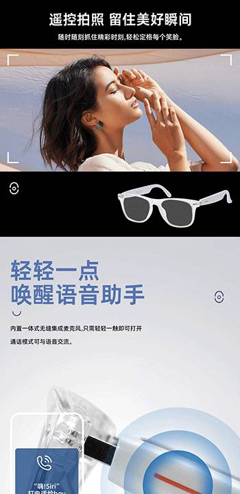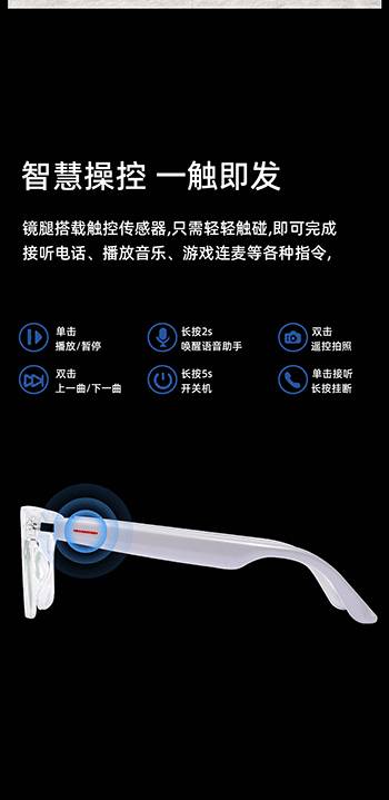 新款智能蓝牙眼镜双耳触摸控制听歌遥控拍照语音唤醒墨镜平光镜