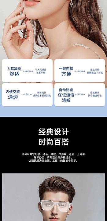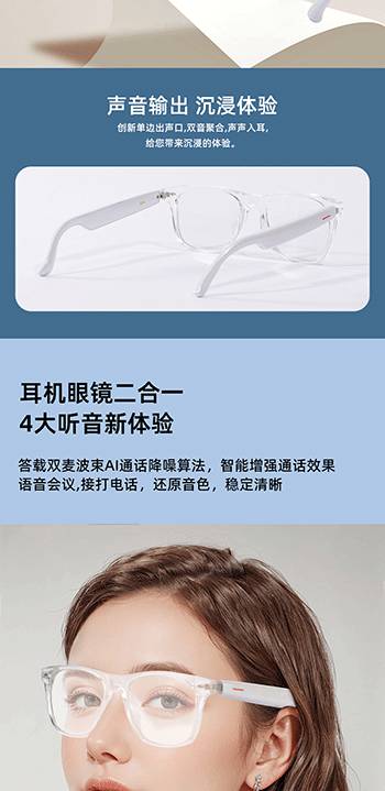 新款智能蓝牙眼镜A01眼镜多功能AI实时翻译耳机通话听歌智能眼镜