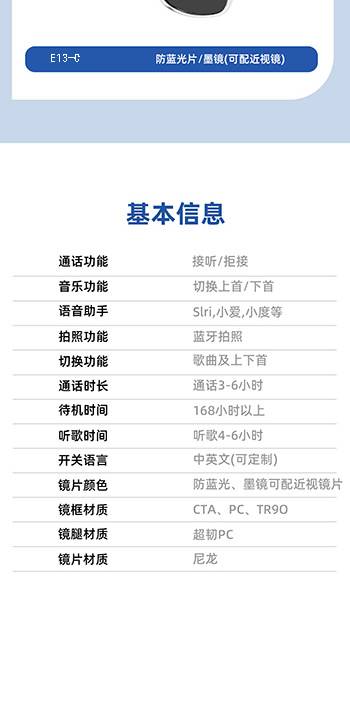 V03-T6智能蓝牙通话眼镜800万像素可AI录像拍照黑科技翻译跨境