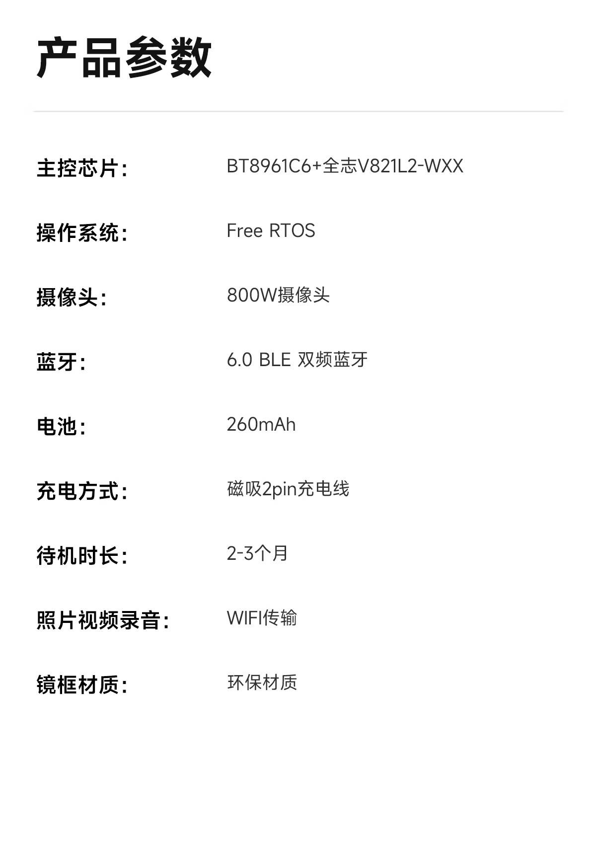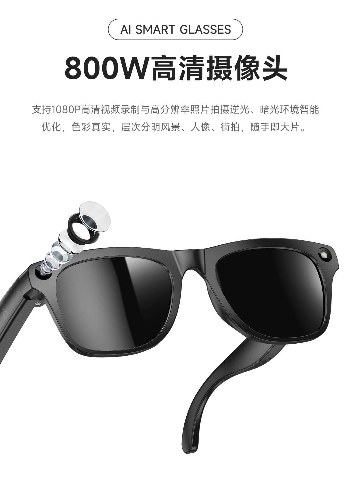 V03-T6智能蓝牙通话眼镜800万像素可AI录像拍照黑科技翻译跨境