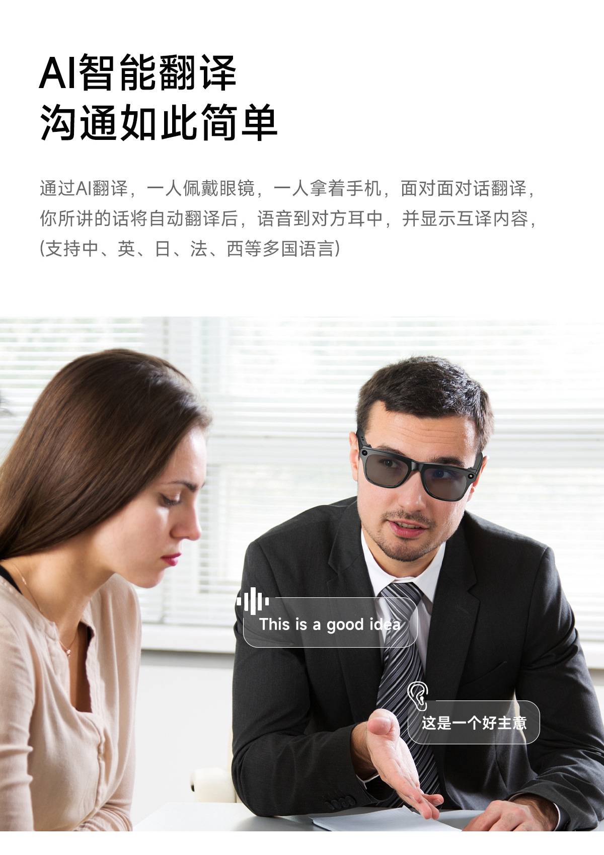 AI智能眼镜黑科技翻译识别拍照视频录制多功能
