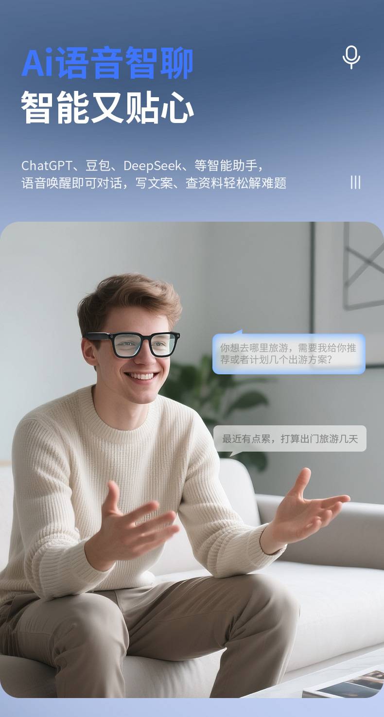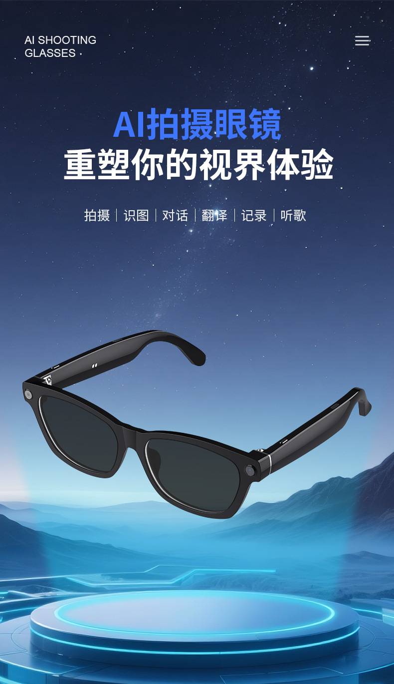 V03-T6智能蓝牙通话眼镜800万像素可AI录像拍照黑科技翻译跨境